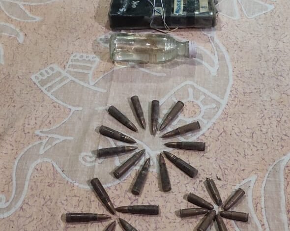 The ammunition recovered includes Rifle grenade-02, UBGL thrower-01, Wireless with antenna without battery -01, IED type with wire-02, Detonator type with wire-01, AK47 cartilage -17, 9mm cartilage -07, One glass bottle having glycerine type liquid-01, One khakhi jacket-01 and Black leather shoe-01.