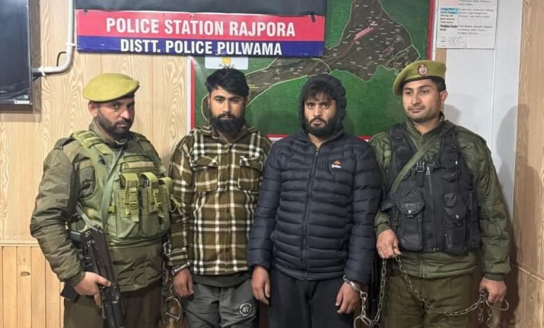The two occupants of the vehicle were immediately taken into custody and identified as Muneer Ahmed Sheikh, son of Abdul Hameed Sheikh, and Toufeeq Ahmed Sheikh, son of Muhammad Rafiq Sheikh, both inhabitants of Hajitra Karna area of Pulwama district.