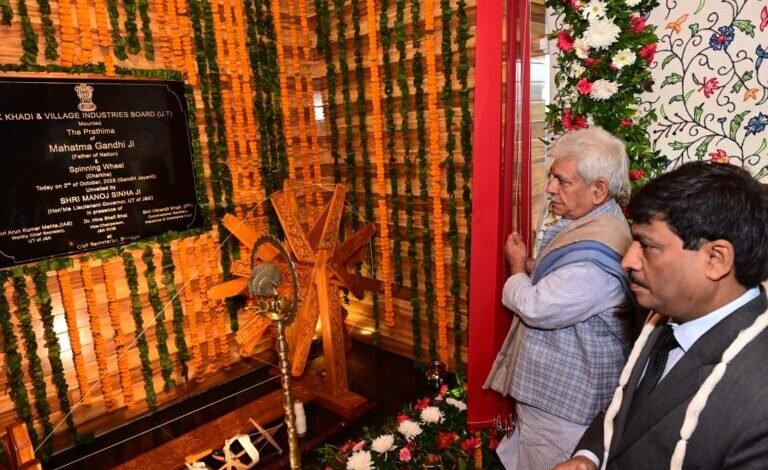 The Lt Governor congratulated the Jammu & Kashmir Khadi and Village Industries Board (KVIB) for the installation of the statue of Mahatma Gandhi and Charkha. He also called for collective efforts by all the stakeholders for promotion of Swadeshi products.