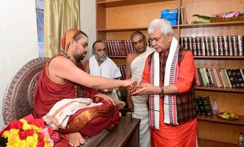 LG Sinha pays obeisance to Jagadguru Sri Sri Sri Vidhushekhara Bharati Mahaswamiji