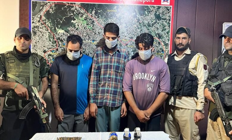 Srinagar, August 04: Police on Friday said that its a small team of Srinagar police arrested three militant associates linked with proscribed militant outfit TRF, offshoot of proscribed militant outfit LeT in Natipora area of Srinagar.