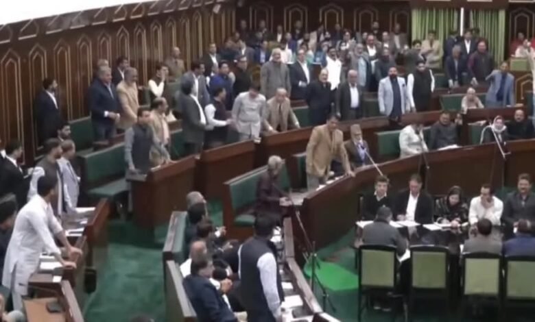 Srinagar, Mar 05 : The Legislative Assembly on Wednesday witnessed uproarious scenes over remarks made by Leader of the Opposition (LOP) and senior BJP leader Sunil Sharma, who called the July 13 martyrs as “traitors.”