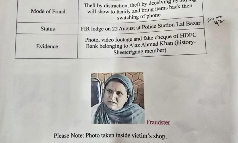 “The Great Jewellery Scam: Woman Dupes Goldsmiths and Copper Dealers Across Srinagar — Fake Cheques, Disappearing Acts, and Trail of Betrayal!”