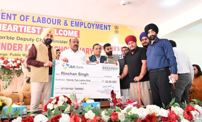 During the programme, the Deputy Chief Minister distributed financial assistance amounting Rs. 84,07,071 among the beneficiaries under various welfare schemes of the Jammu and Kashmir Building and Other Construction Workers Welfare Board (JKBOCWWB), Employees Compensation Act and ESI schemes.