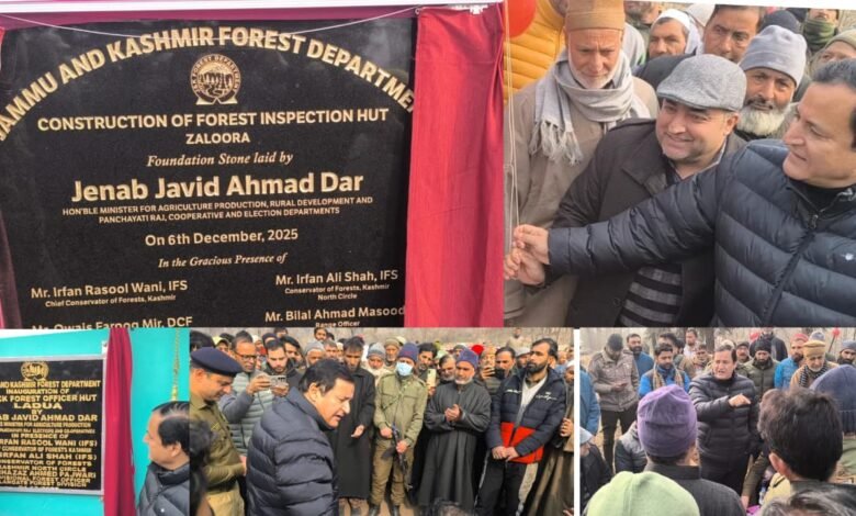 The Minister inaugurated newly constructed Block Officer Forest Huts at Kiter Daji and Ladua. He also laid foundation stones for upcoming Forest Eco-Parks at Harwan and an Inspection Forest Hut at Zaloora, Baramulla.