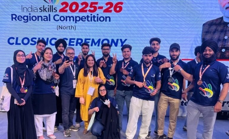 Jammu and Kashmir’s strong performance at the National India Skills Competition 2025–26 continued as 57 candidates participated, bagging 27 medals including 2 Gold, 3 Silver, 9 Bronze and 13 Medallions of Excellence across various skills like Fashion Technology, Bricklaying and Software Testing.