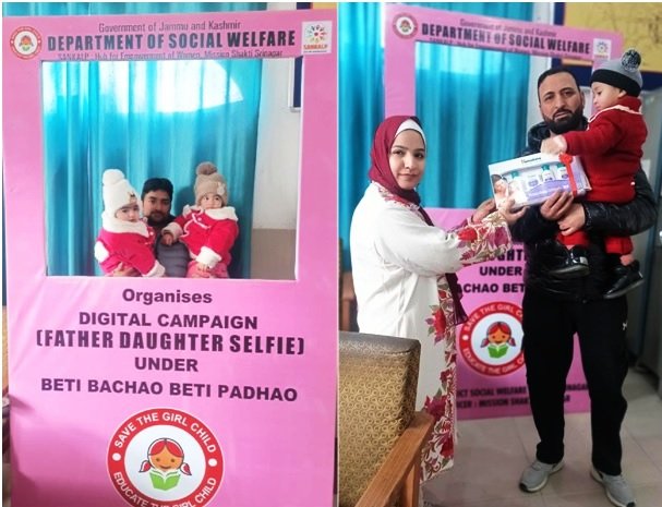 SRINAGAR, JANUARY 08: Social Welfare Department (SWD), SANKALP- Hub for Empowerment of Women- Mission Shakti Srinagar, today conducted ‘Father-Daughter Selfie’ initiative under Beti Bachao Beti Padhao (BBBP) campaign at UPHC Batamaloo.