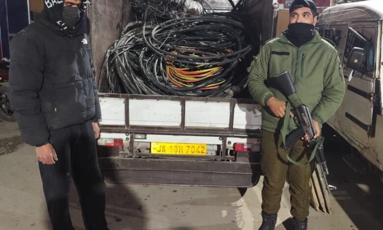 During the course of investigation, the stolen property (cable), which had been stolen by unknown offenders, was successfully recovered. The vehicles used in the commission of the crime, bearing registration numbers JK03H-3944 (Tata Mobile) and JK13H-7042 (Chota Hathi), have also been seized.