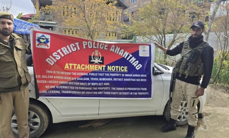 In a significant action against drug trafficking, Anantnag Police has attached immovable and movable property belonging to a notorious drug peddler under the provisions of Section 68(F) of the NDPS Act.
