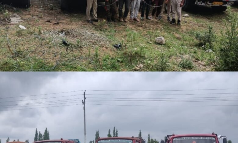 A police party of PS Kunzer under the supervision of SDPO Tangmarg Shri Imtiyaz Ahmad-JKPS seized 3 vehicles (Tippers) and arrested 3 drivers identified as Javid Ahmad Shah son of Nazir Ahmad Shah resident of Gonipora Kunzer, Iqbal Ahmad Ganie son of Ab Aziz Ganie resident of Kasie Mohalla Chanpora & Javeed Ahmad Shah son of Gh Ahmad Shah resident of Batapora Kunzer at Bongam Kunzer for illegal extraction and transportation of minerals.
