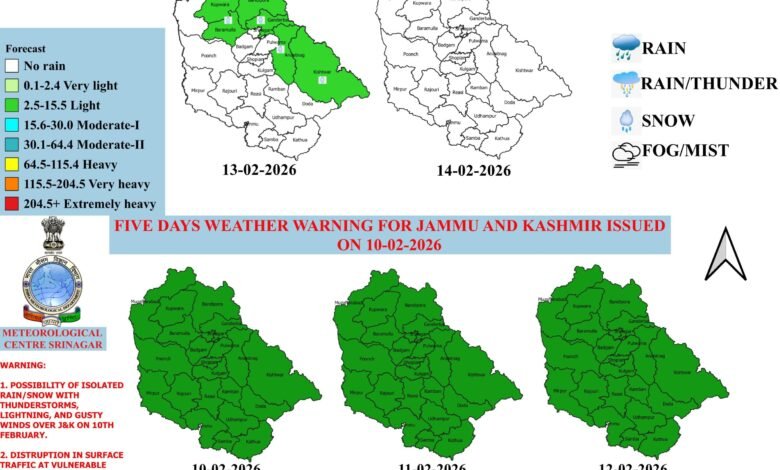 *●Overall no major Rain/Snow forecast over entire J&K till 21st February*.