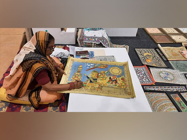 New Delhi : Shanti Devi, a National Award-winning exponent of Madhubani painting, is showcasing India’s successful moon landing mission — ‘Chandrayaan-3′ — in the form of a Madhubani artwork at the G20 Art and Craft Exhibition.