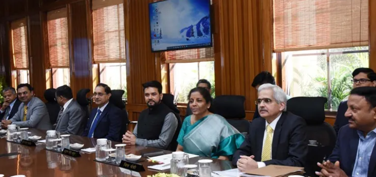 Minister of State for Finance Dr Bhagwat Karad and Secretaries of Finance Ministry also attended the meeting.