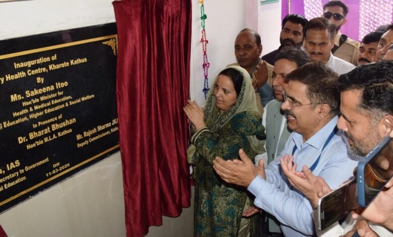 KATHUA, MARCH 11: Minister for Health and Medical Education, Social Welfare and Education, Sakeena Itoo on Thursday dedicated a newly constructed Primary Health Centre (PHC) at Kharote to the public bringing healthcare closer to rural communities in the district.