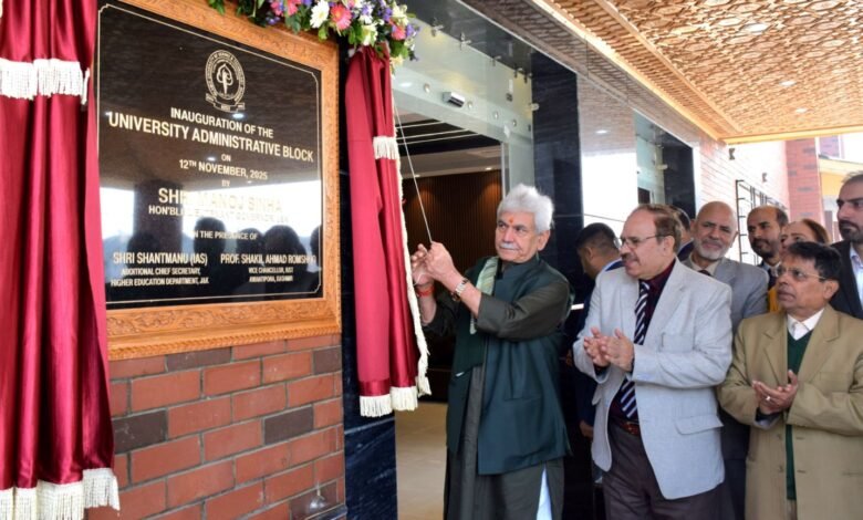 SRINAGAR, NOVEMBER 12: “We have created massive infrastructure in 5 years and now young professionals must focus on development strategies to change J&K’s fortunes,” the Lieutenant Governor Shri Manoj Sinha said on Wednesday. He said the massive investment in the last 5-6 years in human capital, Research & Development, Incubation Centres and University’s infrastructure will drive J&K’s economic growth. The Lieutenant Governor was addressing the Valedictory session of Foundation Day Celebrations of Islamic University of Science & Technology (IUST). On the occasion, the Lieutenant Governor inaugurated the IUST Innovation Campus, and a new Administration Block at IUST main Campus, Awantipora.