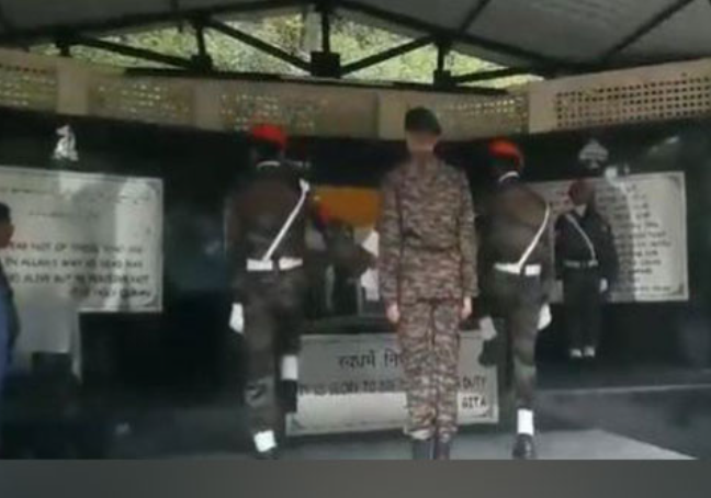 Jammu : A sombre wreath laying ceremony was held for Army Rifleman Ravi Kumar, who lost his life during an encounter with terrorists at Narla in the Rajouri disrtrict of Jammu and Kashmir on Tuesday.