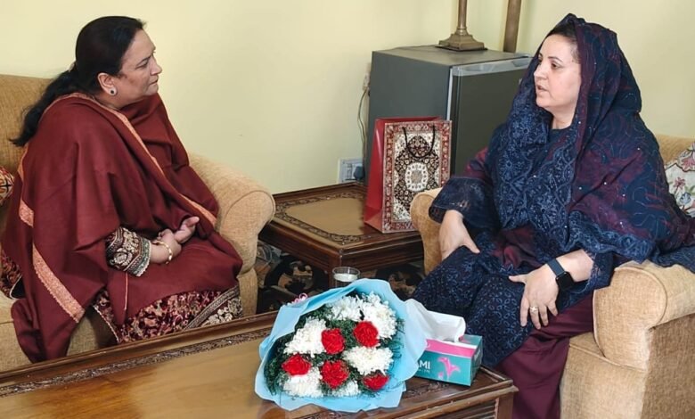 JAMMU, OCTOBER 14: After assuming charge recently as Managing Director (MD), Jammu and Kashmir Women’s Development Corporation (JKWDC), Purnima Mittal today called on Minister for Social Welfare, Education, Health and Medical Education, Sakeena Itoo and briefed her about the Corporation’s ongoing schemes, programmes, and new initiatives aimed at empowering women and promoting their self-reliance across Jammu and Kashmir.