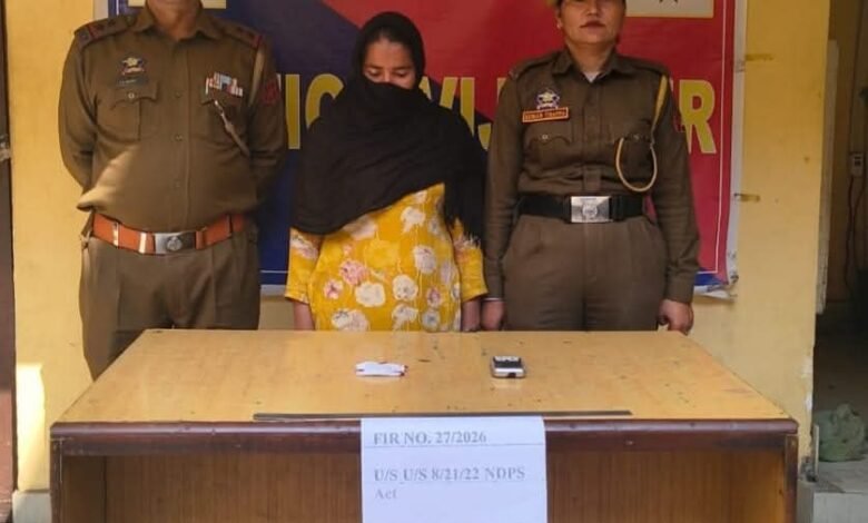 The lady drug peddler identified as Soma Bibi W/o Jamat Ali R/o Rakh Barotian tehsil Vijaypur district Samba has been arrested and the contraband item alongwith weighing machine has also been seized.