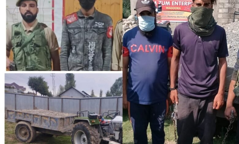 Police parties under the supervision of SDPO Kreeri Khalid Ashraf-JKPS assisted by SHO PS Chandoosa & IC PP Wagoora, seized 03 tractors and arrested their drivers for their involvement in illegal extraction and transportation of minerals at Bandipayeen Chandoosa & Vizer Wagoora. They have been identified as Nasrullah Khanday son of Manzoor Ahmad resident of Dandmoh at Bandipayeen Chandoosa, Mohammad Umar son of Mohammad Sultan Chopan resident of Mirangund Nowpora & Javid Ahmad son of Ghulam Qadir Mir resident of Saloosa Kreeri.