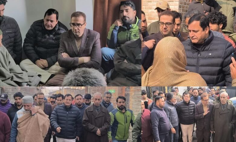 SRINAGAR, NOVEMBER 16: Minister for Agriculture Production, Rural Development & Panchayati Raj, Cooperative and Election Departments, Javid Ahmad Dar today visited Nowgam and Natipora to offer condolences to the families of Mohd Shafi and Suhail Ahmad Rather, who tragically lost their lives in the recent explosion at Nowgam Police Station.