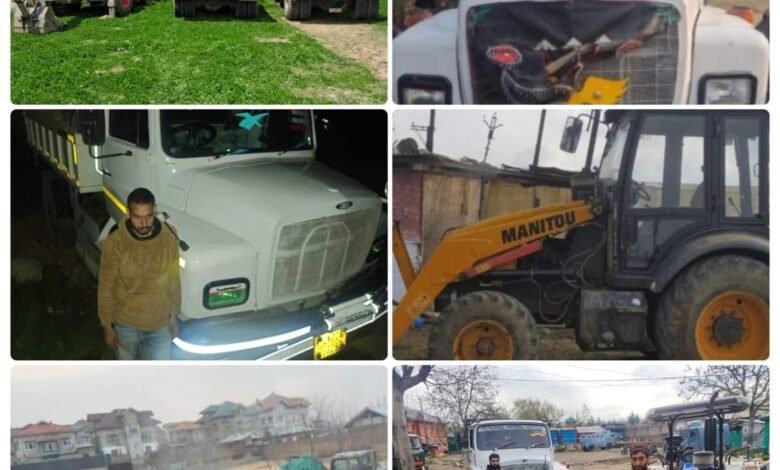 The seized vehicles include 17 tippers, 20 tractors, 5 JCBs, 2 L&T machines, and 1 sand dredger, which were impounded from various areas of the district including Beerwah, Khag, Hardpanzoo, Chadoora, Kanigund, Doodganga, and Waterhail.