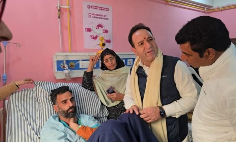 Accompanied by senior party leaders, Sharma, per news agency—Kashmir News Observer (KNO) visited Ujala Cyngus hospital to meet the injured persons.