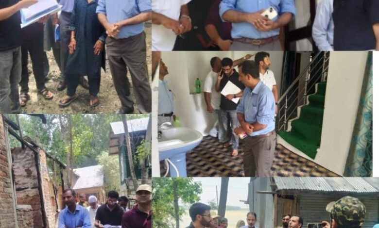 BANDIPORA, JULY 18: The Additional District Development Commissioner (ADDC) Bandipora, M Ashraf Hakak along with representatives from the Roads and Buildings (R&B) department Sumbal and the Revenue Department Sumbal, undertook a thorough physical verification of damages caused by natural calamities, specifically fire and earthquakes, in the areas of Inderkote Sumbal and Kanyari Hajin.