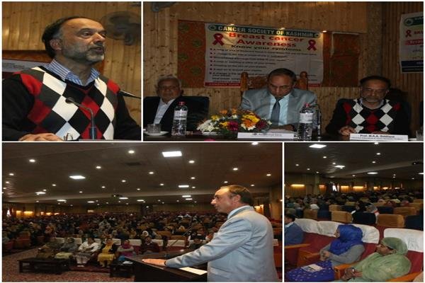 The well known and prominemnt doctors of Kashmir Valley were also present on the occasion, including, Prof, M Maqbool Lone, Prof Imtiyaz Ahmad Bhat, Prof M Ashraf Ganie. The speakers shed linght on the breast cancer and gave an overview of cancer and mything about it.