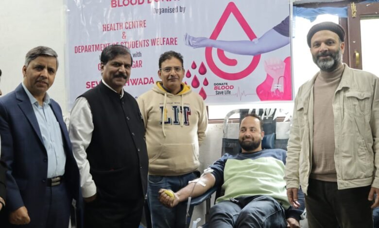 Ganderbal, Oct 19: Under the flagship programme Seva Pakhwada, the Department of Students Welfare (DSW) and the Health Centre of the Central University of Kashmir (CUK) in collaboration with Government Medical College (GMC), Srinagar, organised a blood donation camp at varsity’s Green Campus here Thursday.