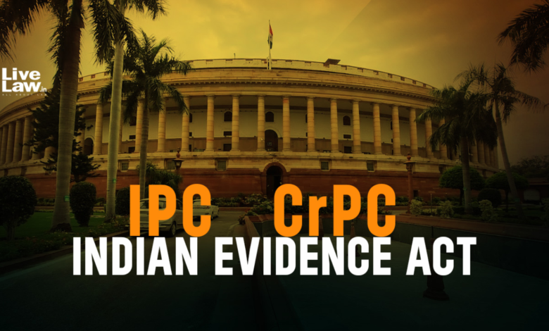 Lok Sabha on Tuesday took up the three bills to replace the Indian Penal Code of 1860, Code of Criminal Procedure (CrPC) of 1973 and Indian Evidence Act, of 1872 for consideration and passing.