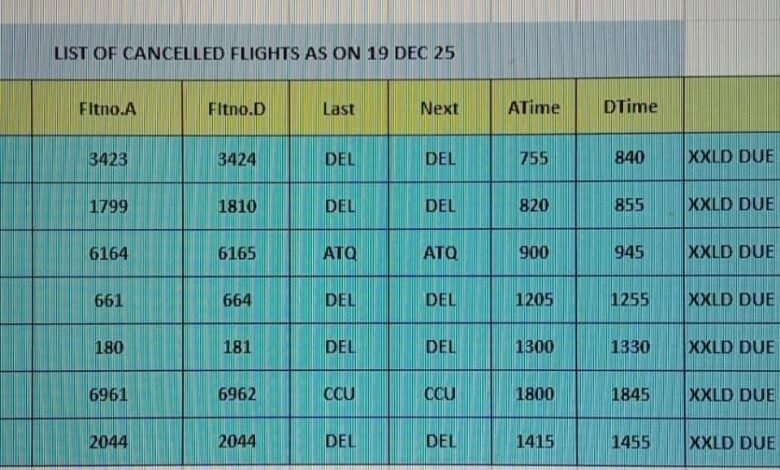 Srinagar, Dec 19, Air traffic at Srinagar International Airport witnessed major disruptions today as dense fog and poor visibility forced the cancellation of seven scheduled flights, officials said. The cancellations affected services of both domestic and low-cost carriers, leaving many travellers stranded and prompting advisories to reconfirm flight status before arriving at the airport.