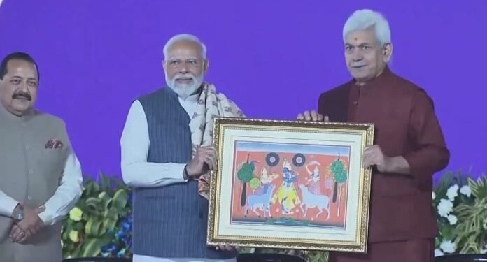 JAMMU, Feb 20: Jammu and Kashmir Lieutenant Governor Manoj Sinha extends a heartfelt felicitation to Prime Minister Narendra Modi during a public program in Jammu.