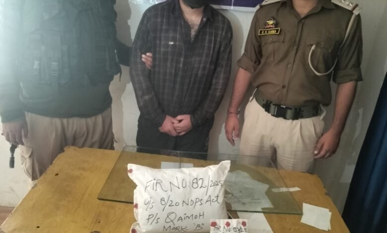A police party from Police Station Qaimoh had established a checkpoint at Khudwani Bypass when one person, upon noticing the police, attempted to flee the spot. However, he was tactfully apprehended after a brief chase. Upon searching him, police recovered 09 grams of Charas and 01 kilogram of grinded Cannabis-like contraband substances from his possession. The accused was arrested on the spot.