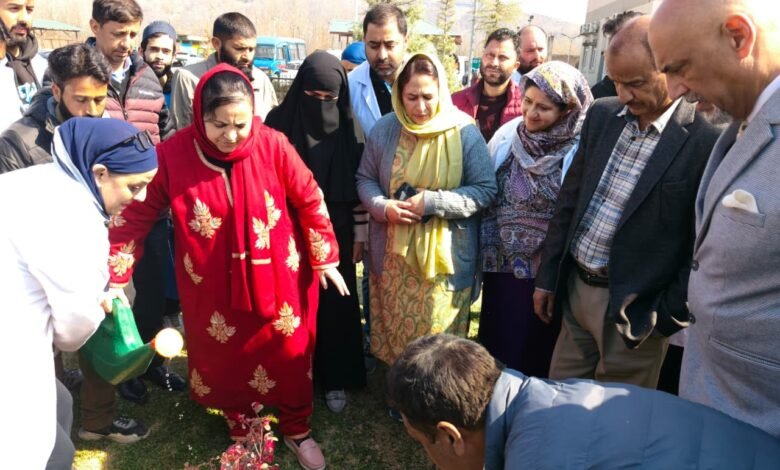 GANDERBAL, FEBRUARY 24: Minister for Health and Medical Education, Social Welfare and Education, Sakeena Itoo today led a plantation drive at District Hospital Ganderbal to promote eco-friendly practices and reinforce quality healthcare standards under the Kayakalp and National Quality Assurance Standards (NQAS) programmes.