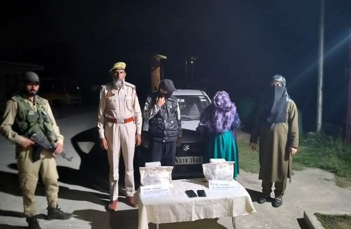 A Police party of Police Post Mirgund headed by IC PP Mirgund at a checkpoint established at Check Raza Khan. During checking, an Alto vehicle bearing registration number JK01V-3940 was intercepted. The vehicle was occupied by two individuals 1.Parvaiz Ahmad Shah son of Abdul Ahad Shah resident of Lolab Kupwara presently residing at Rambailgarh 2. Khushboo Jan daughter of Bashir Ahmad Parray resident of Rambailgarh. During the search 794 grams and 352 grams of contraband Charas like powder were recovered from their possession.Both individuals have been arrested.