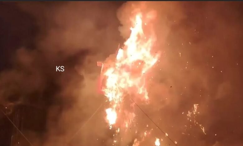 According to the news agency Kashmir Scroll, Kashmiri Pandits along with other devotees, burn the effigies of Ravana, Kumbhakarna and Meghnath at Sher-e-Kashmir Stadium in Sonwar area of Srinagar.