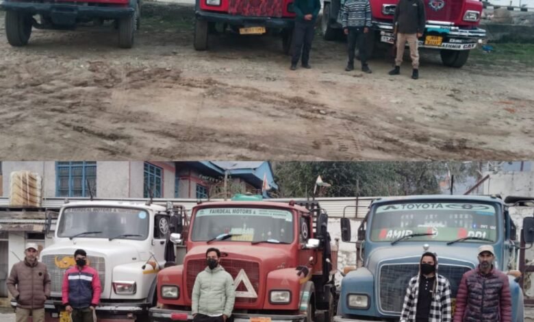 A police party led by SHO PS Tangmarg and SHO PS Kunzer under the supervision of DySP Hqrs Baramulla and SDPO Tangmarg seized 6 tippers and arrested 5 persons (drivers), involved in illegal extraction and transportation of minerals at Reram Kunzer & Chakloo. The accused drivers have been identified as Showket Ahmad Kuthoo son of Gh Ahmad resident of Pariswani, Waseem Ahmad Khan son of Ab Hameed Khan resident of Treran Tangmarg, Firdous Ahmad Dar son of Abdul Majeed Dar, Mohd Saleem Dar son of Gh Nabi Dar & Amir Ahmad Gojree son of Mushtaq Ahmed Gojree, all residents of Jalsheeri.