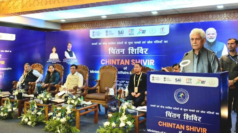 SRINAGAR, APRIL 25: The Lieutenant Governor, Shri Manoj Sinha today addressed national ‘Chintan Shivir’ on Sports at Srinagar. The three-day event organised by Ministry of Youth Affairs and Sports focuses on key policy challenges in sports, strengthening Centre-States/UTs coordination and charting a comprehensive roadmap to transform India into a global sporting superpower. The event is being attended by Sports Ministers from various states, sports administrators, Principal Secretaries from states and representatives from National Sports Federations.