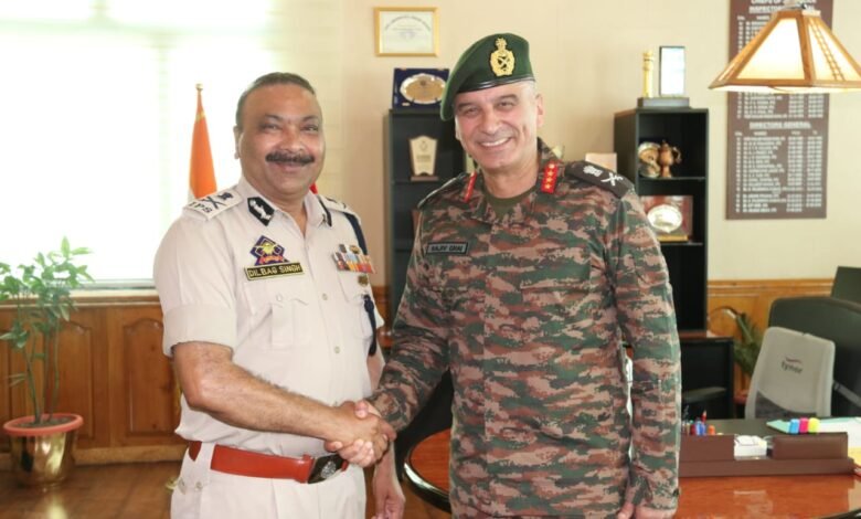 Srinagar, 25 July: General Officer Commanding (GOC) 15 Corps Lt. General Rajiv Ghai AVSM, SM called on the Director General of Police, J&K, Dilbag Singh at Police Headquarters here today.