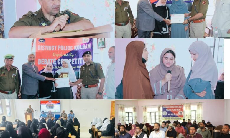 As part of the observance of Police Commemoration Day, Police Flag Day, and Rashtriya Ekta Diwas, Kulgam Police on Friday organized a debate on the theme “Role of Police in Nation Building” at Government Degree College DH Pora and Government Higher Secondary School Ashmuji, Kulgam.