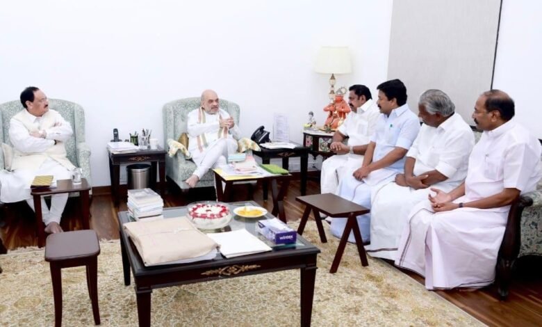 New Delhi : Union Home Minister Amit Shah met the delegation of All India Anna Dravida Munnetra Kazhagam (AIADMK) led by party’s general secretary Edappadi K Palaniswami and party leaders at his residence in the national capital on Wednesday.