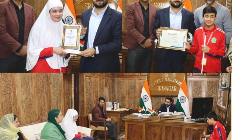 Deputy Commissioner (DC) Srinagar, Akshay Labroo felicitated Specially Abled DPS Srinagar students Zainab Bilal (96%) and Farees Rafiq (93%) for their exceptional CBSE Class 10 results