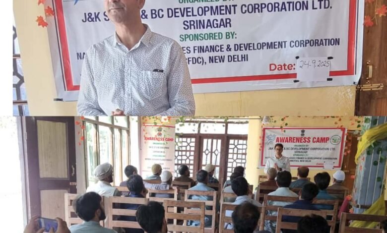 The Jammu & Kashmir Scheduled Castes, Scheduled Tribes & Backward Classes Development Corporation today conducted an Awareness Camp at Thane, Ganderbal. The programme was organized and sponsored by the National Backward Classes Finance & Development Corporation (NBCFDC).