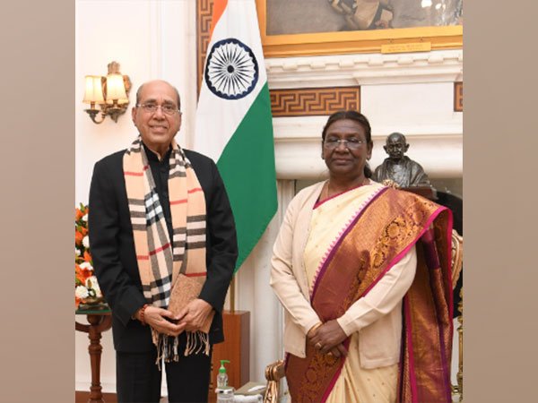 New Delhi : The chairman of the Ayodhya Ram Mandir Construction Committee, Nripendra Misra called on President Droupadi Murmu at Rashtrapati Bhavan on Tuesday.