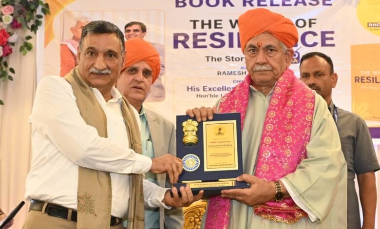 JAMMU, APRIL 28: The Lieutenant Governor, Shri Manoj Sinha, today launched the book ‘The Waves of Resilience, Story of Radio Sharda’ edited by Shri Ramesh Hangloo, the founder of Radio Sharda. The book is a collection of articles written by common listeners, litterateurs and renowned personalities from Kashmiri Pandit Community and highlights the impact of Radio Sharda on the socio-cultural activities of the community.