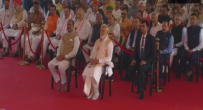 The ceremony began with a traditional ‘pooja’ with Vedic rituals which will continue for an hour. PM Modi performed “Ganapati Homam” to invoke Gods to bless the inauguration of the new Parliament building.