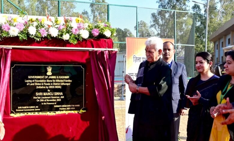 JAMMU, NOVEMBER 29: Lieutenant Governor Shri Manoj Sinha on Saturday laid the foundation stone for construction of new homes for families who were affected by recent natural calamities in Ramban and Udhampur.