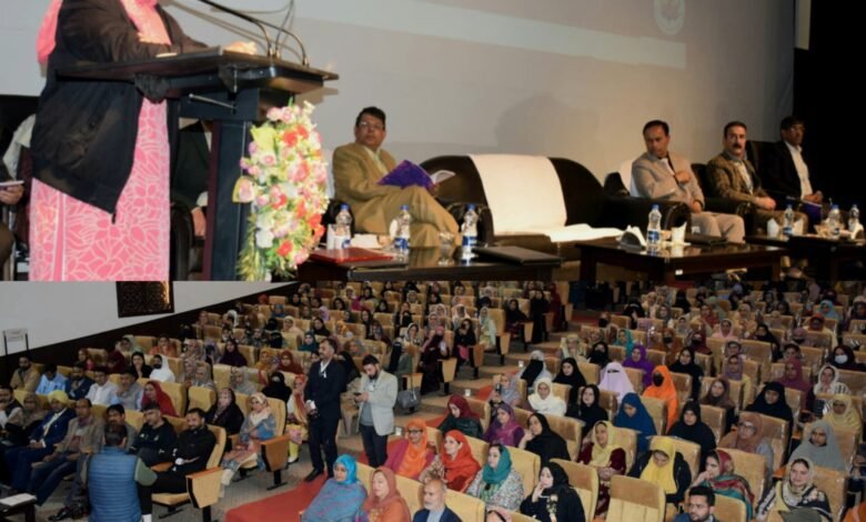 SRINAGAR, OCTOBER 30: Minister for Education, Social Welfare, Health and Medical Education, Sakeena Itoo addressed the Orientation Program for capacity building of Early Childhood Care and Education (ECCE) AAYAS (helpers) at J&K State Council of Education Research and Training (SCERT) Bemina here today.