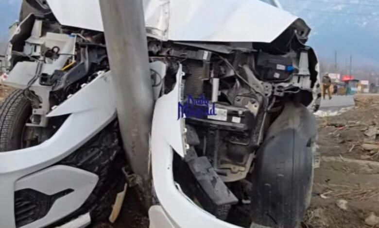 An official told news agency Kashmir News Corner (KNC) that a Grand i10 car bearing registration number JK16C-1665 was on its way from Kangan towards Ganderbal when the driver lost control of the vehicle near Zero Point Manigam, causing it to collide with a pole.