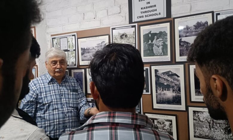 During the field trip, students were guided by Mr. Showkat Rashid Wani, former Power Development Commissioner, Kashmir, and curator of the Nostalgic Kashmir exhibition. Mr. Wani guided the students through a historical journey, tracing the condition of Dal Lake and other major water bodies in Kashmir, dating back to the 1850s.